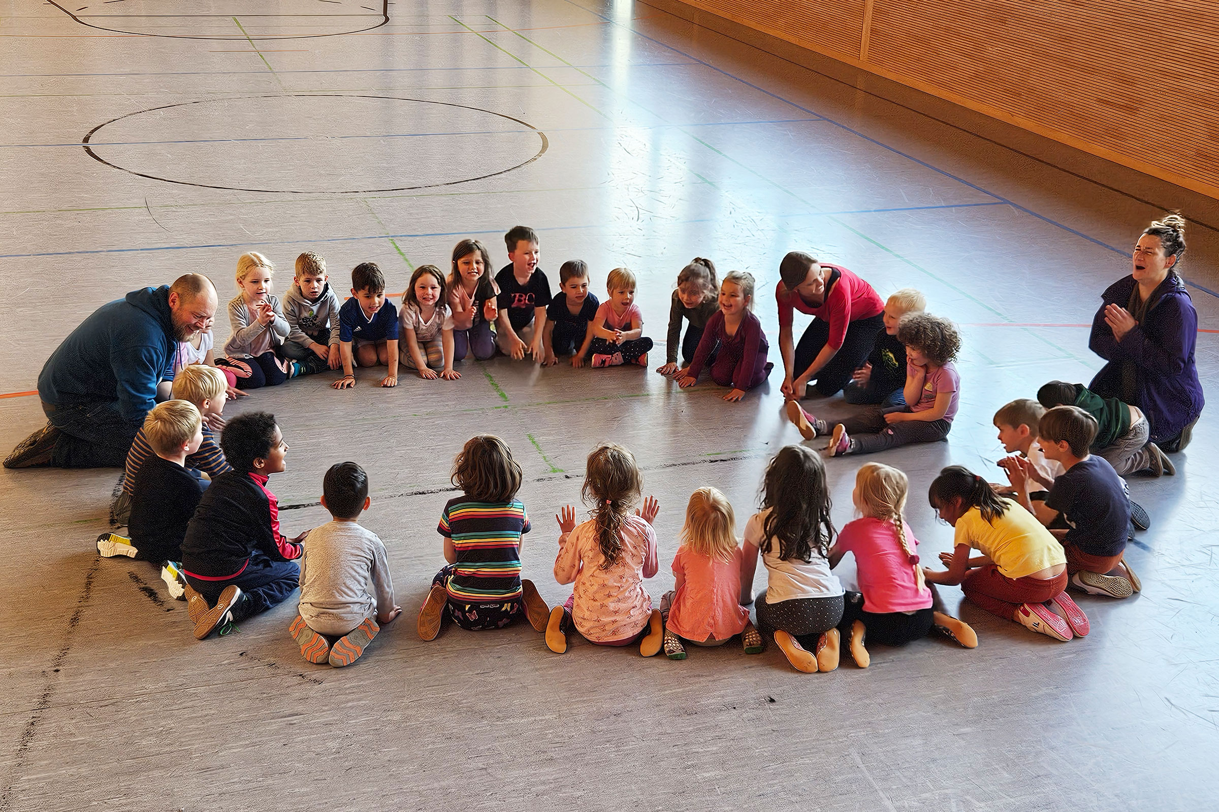 Spielerisch fördern wir Koordination, Gleichgewicht und Beweglichkeit. Mit abwechslungsreichen Übungen, kleinen Spielen und ersten Turnelementen entdecken die Kinder die Freude an der Bewegung.